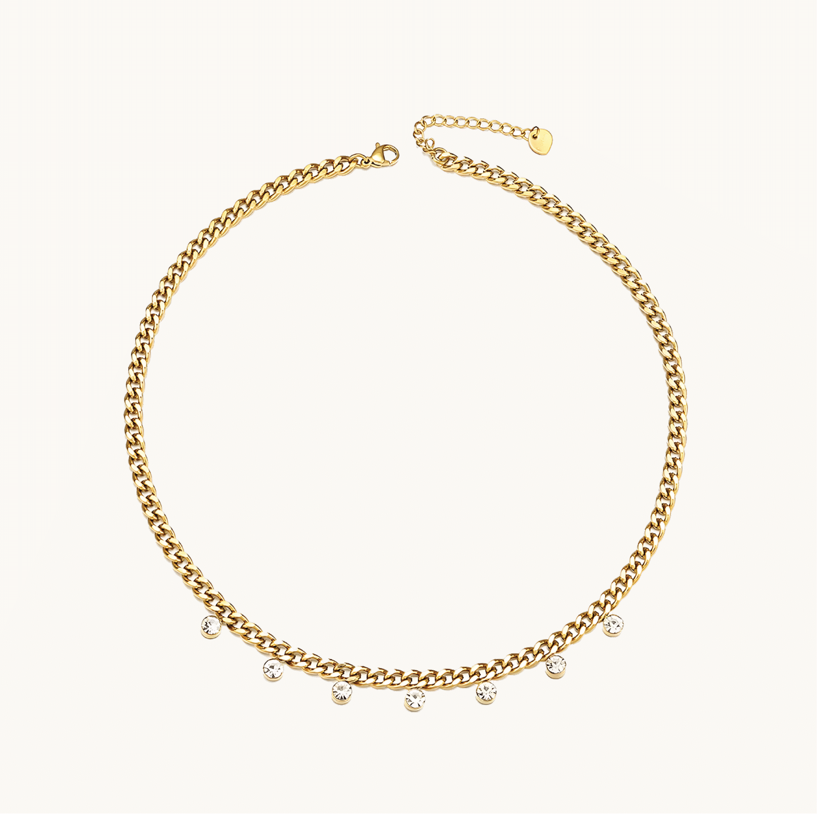Dazzle Drop Necklace is a stunning statement piece with a thick chain and a bold stone drop that’s sure to turn heads. Crafted with 18k gold-plating, it’s waterproof, tarnish-free, and hypoallergenic. Make your look shine with this eye-catching accessory!