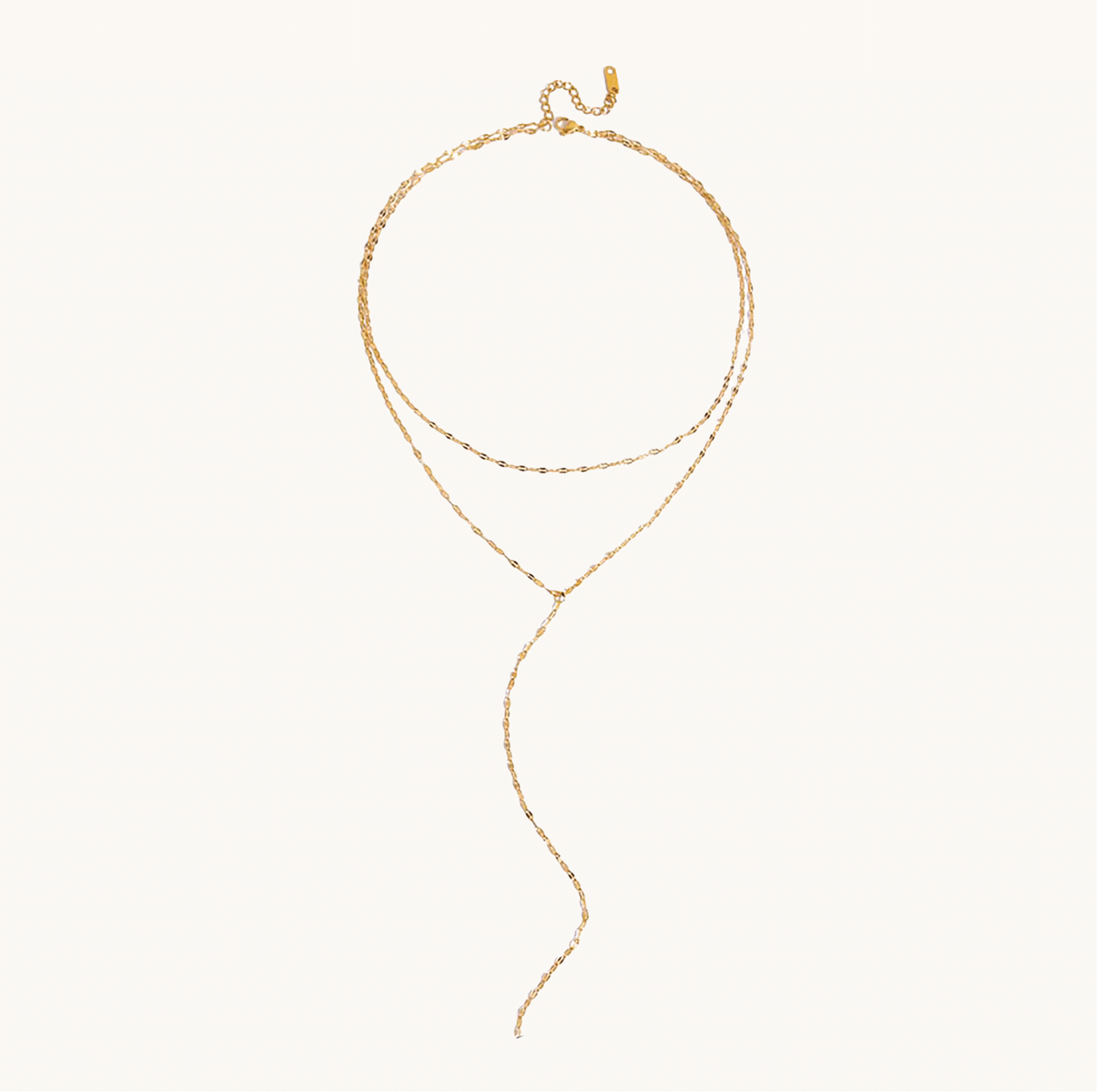 The Layered Y Necklace is an elegant and modern design, featuring multiple layers that gracefully form a Y-shape, adding a touch of sophistication to any outfit. Crafted with 18k gold plating, it is waterproof, tarnish-resistant, and hypoallergenic, ensuring enduring shine and comfort. A versatile piece that effortlessly elevates your style.